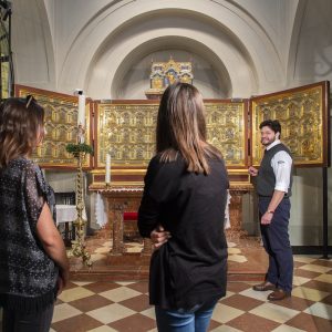 Besucher:innen erwarten im Stift Klosterneuburg eindrucksvolle Kunstschätze und spannende Geschichten. Der weltberühmte Verduner Altar (1181) erzählt in meisterhaften Bildern die Geschichte der Bibel und zählt zu den bedeutendsten Werken des Mittelalters. Die Schatzkammer des Stiftes mit dem österreichische Erzherzogshut, der heiligen Landeskrone, ist ein ganz besonderes Highlight. Ein weiterer Höhepunkt ist der traditionsreiche Weinkeller des Stiftes, der nach seiner Neugestaltung 2024 zu einer immersiven Entdeckungsreise in die Welt des Weins einlädt und die 900-jährige Weintradition des Stiftes erlebbar macht. Wechselnde Ausstellungen laden immer wieder zu neuen Entdeckungen ein (Mai bis November).